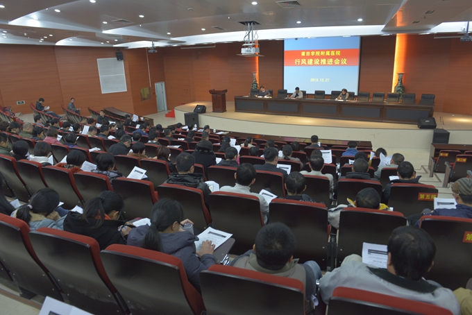 12月27日下午,我院在新区国际学术厅召开行风建设推进会议。院领导、中层以上干部、支部委员、副高以上人员参加会议。