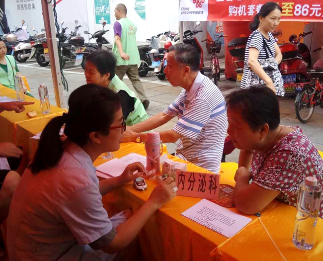 本次义诊活动为期半天,共设有血液内分泌科、心血管内科、骨科、五官科、妇产科等11个科室。当天上午,前来问诊咨询的人络绎不绝,我院专家与医护人员均能耐心地为群众答疑解惑、诊断病情、发放宣传材料,普及医学常识和健康知识,真心实意为群众的健康谋福祉。据统计,当天上午共接诊300余人次,发放健康知识宣传单近1000份,免费为群众测量血压、血糖近500次。