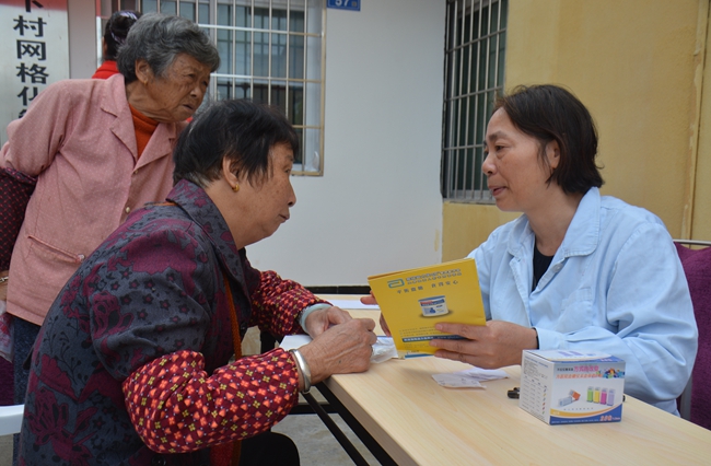 义诊现场,来自护理部、药剂科、应急病房、呼吸内科、神经内科、血液内分泌科、心血管内科、耳鼻咽喉科等多学科的医护人员,为村民提供“一站式”义诊,同时免费为村民测量血压血糖、查心电图、发放药品和健康指导手册。该院护理部主任黄美春一行还前往岭下村79岁贫困户陈大娘家中,送去了油和大米等慰问品。