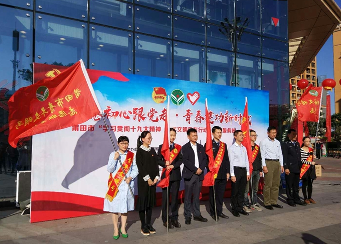 为深入学习贯彻党的十九大精神,引导广大团员青年投身“学懂、弄通、做实”十九大精神,在“12·4全国法制宣传日”、“12·5国际志愿者日”来临之际,共青团莆田市委组织全市广大青年文明号(争创)集体,开展以“不忘初心跟党走•青春建功新时代”为主题的志愿服务统一行动日活动。