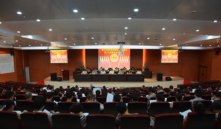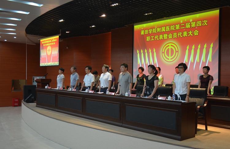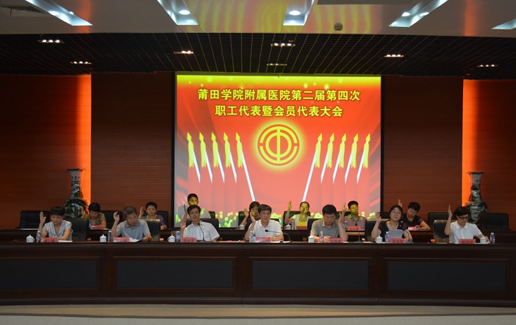 7月22日下午,我院第二届第四次职工代表暨会员代表大会在国际学术厅隆重召开。会议特邀医院老领导陈进珍、蔡文森、郭德馥出席,院各民主党派、无党派人士、职工代表列席会议。本次大会正式代表共98名,实到88名,到会特邀代表3名、列席代表31名,会议由院党委副书记李励军主持。
