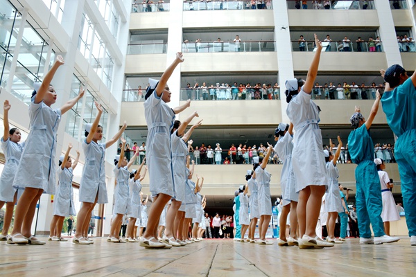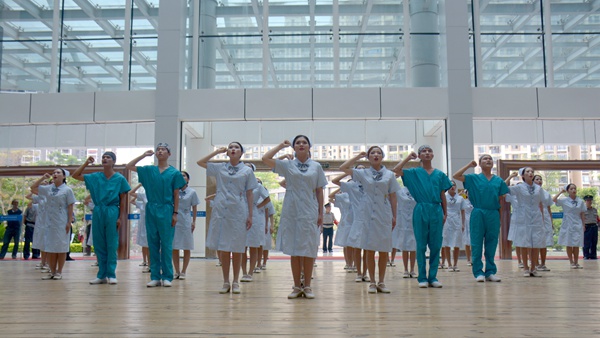 据介绍,为了这次“快闪秀”,参与演出的48名护士前期下足了功夫,大家利用下班时间,每天都要练习两个多小时,但她们不仅毫无怨言,还很开心,累并快乐着!