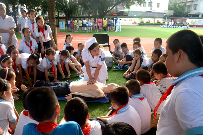 9月7日下午,由莆田市红十字会、莆田市护理学会、我院急诊科共同主办的“急救知识进校园”暨纪念第18个“世界急救日”活动在莆田市第二实验小学举行。急救专家对该校1200多名师生及家长进行急救知识和急救技能的传授、培训。