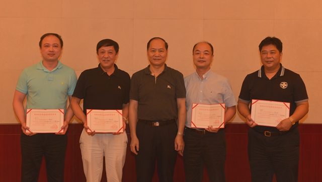 林建华教授(中)为组长及副组长颁发证书。 黄筱军 摄