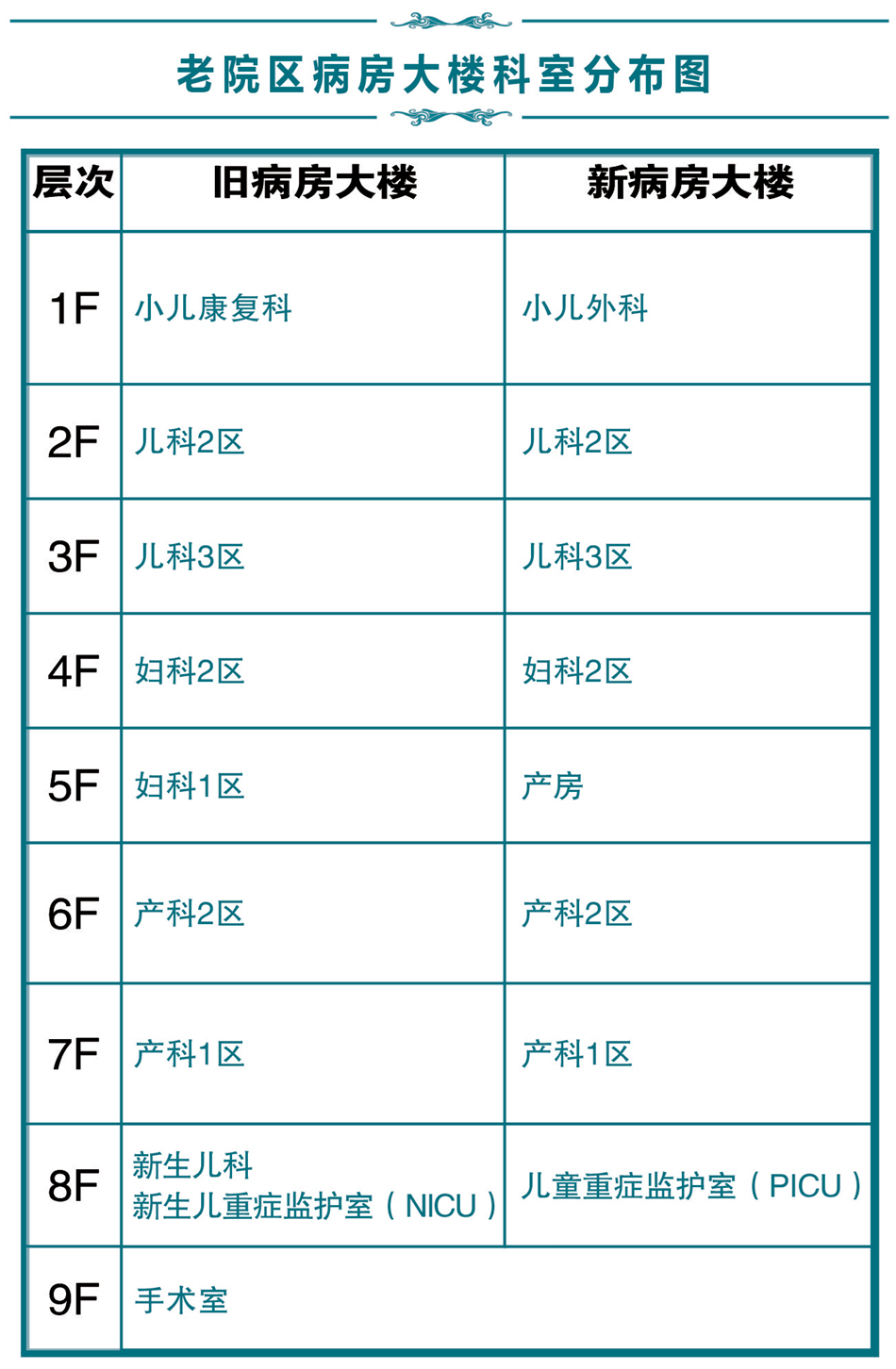 老院区病房大楼科室分布图