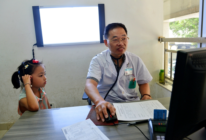 接诊中的张洪荣。 黄筱军 摄