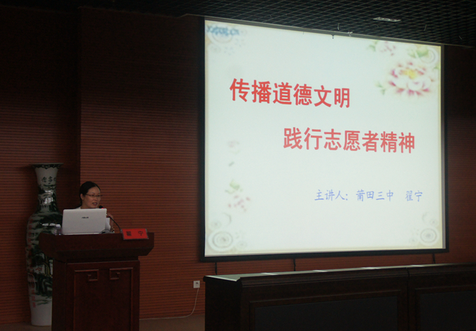莆田三中优秀教师志愿者翟宁作“传播道德文明,践行志愿者精神”讲座