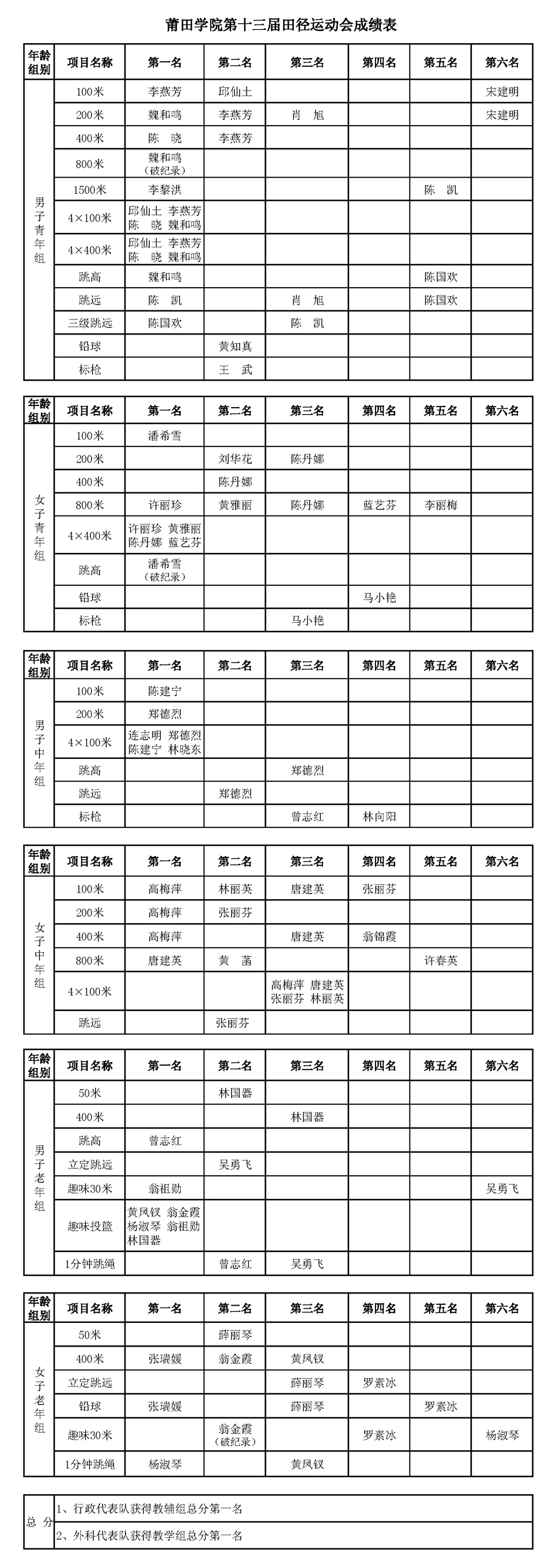 我院在莆田学院第十三届田径运动会中喜获佳绩
