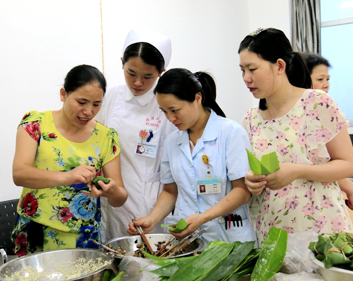 粽叶飘香,情意浓浓。值此端午佳节来临之际,我院消化内科住院病房病人却同往常一样有增无减。为了让患者和陪同家属能安心住院诊疗,同时过上传统节日,6月5日下午,消化内科老党员沈秀红护士长临时抽调梁虹、林清金等骨干护士,协同刘剑雄主治医师,精心挑选健康养胃馅料并包好蒸熟,在病房开展了一场“医患之家、情满端午---佳节我们一起度过”主题活动。
