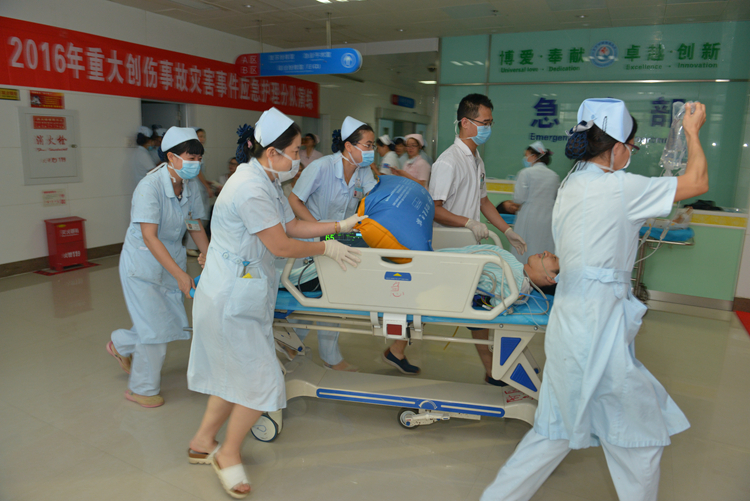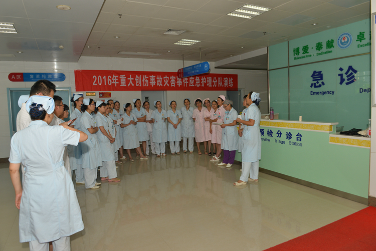 为加强护理人员重大创伤应急急救意识,提高处理突发性公共卫生事件的应急救治能力,检验医院护理管理组织体系的指挥协调能力,我院护理部于7月21日下午在急诊科开展了重大创伤事故灾害事件应急护理演练。