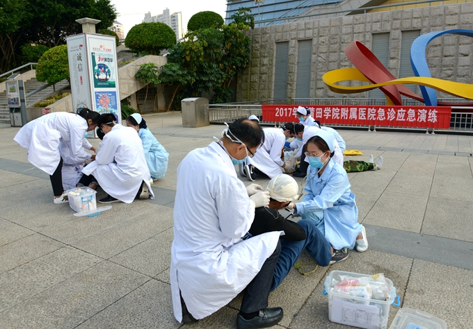 急诊科主任黄锋庆介绍,通过演练切实检验和提高了参演人员的技术操作、制度执行、沟通协调、设备物资准备情况,并对存在问题进行了分析和总结,形成和完善应急救援的常态化管理,为大型突发性事件的应急救援打下坚实基础。